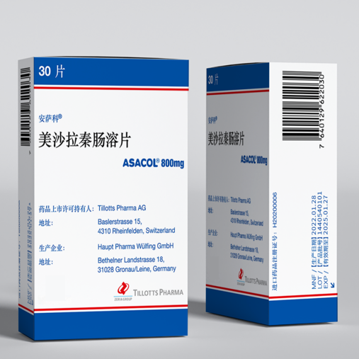 商品名:安萨科® 通用名:美沙拉秦肠溶片 剂 型:片剂 规 格:800mg/片,30片/盒,60片/盒,90片/盒 适应症:治疗轻中度溃疡性结肠炎