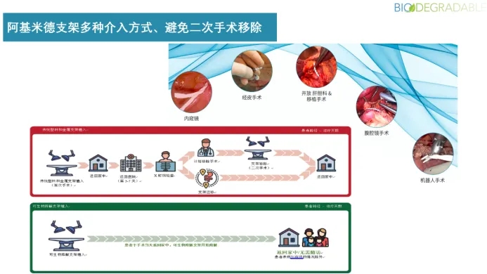 阿基米德支架为一款可生物降解的胆道和胰管支架,用于胆道或胰管的引流,以替代目前普遍使用的塑料支架,置入体内后因其可降解的特性无需二次手术移除,属于重大创新。阿基米德支架分为快速、中速与慢速三种不同的降解类型,满足不同适应症所需,无论聚合物还是降解产物均具有良好的生物相容性。目前阿基米德支架已在包括EU在内的50余个国家上市。
